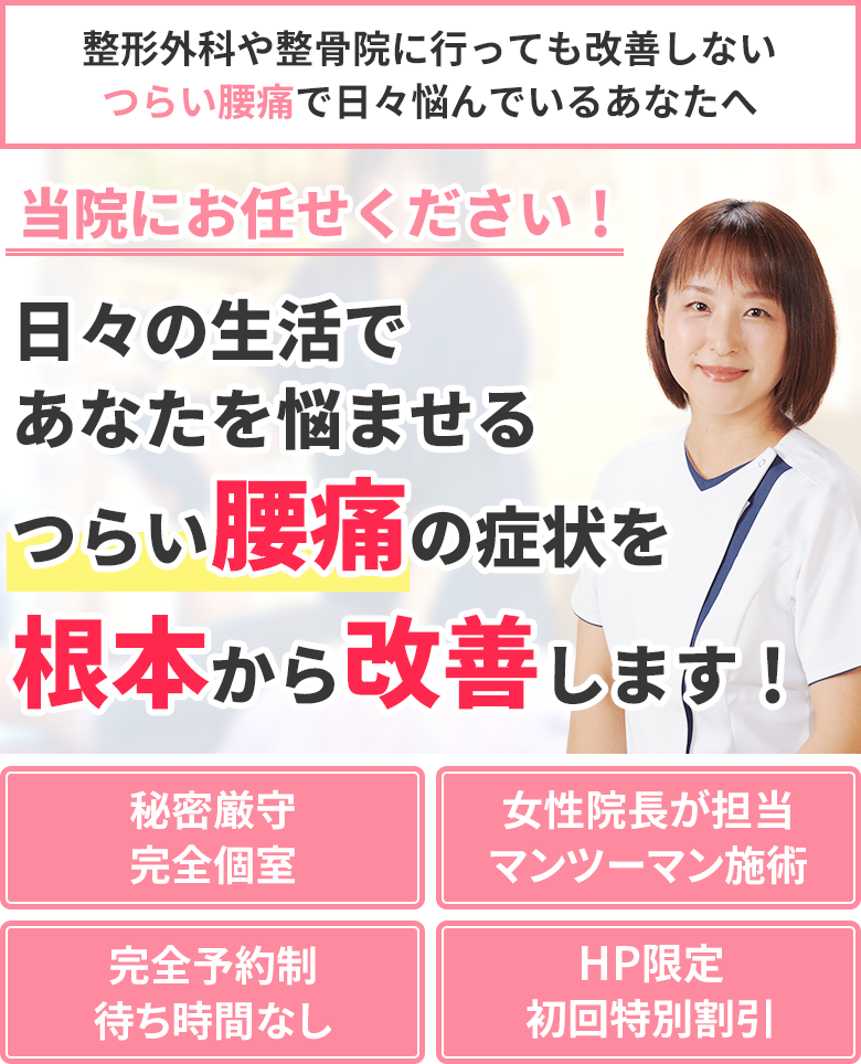 腰痛の原因で最も多いのは「体の歪み」です。