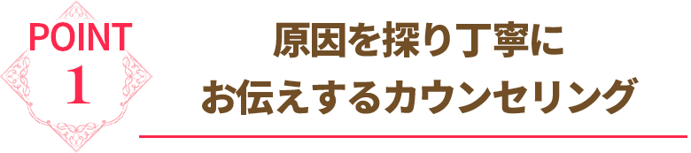 ◎ 独自の検査法で原因を見つけ「なぜ不調が出ているのか」「なぜ今まで治らなかったのか」「どうすれば治るか」をわかりやすく説明。 |